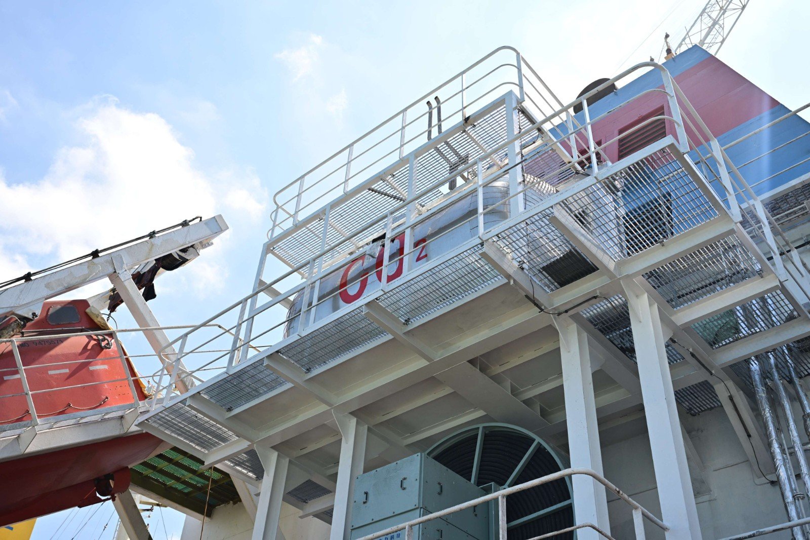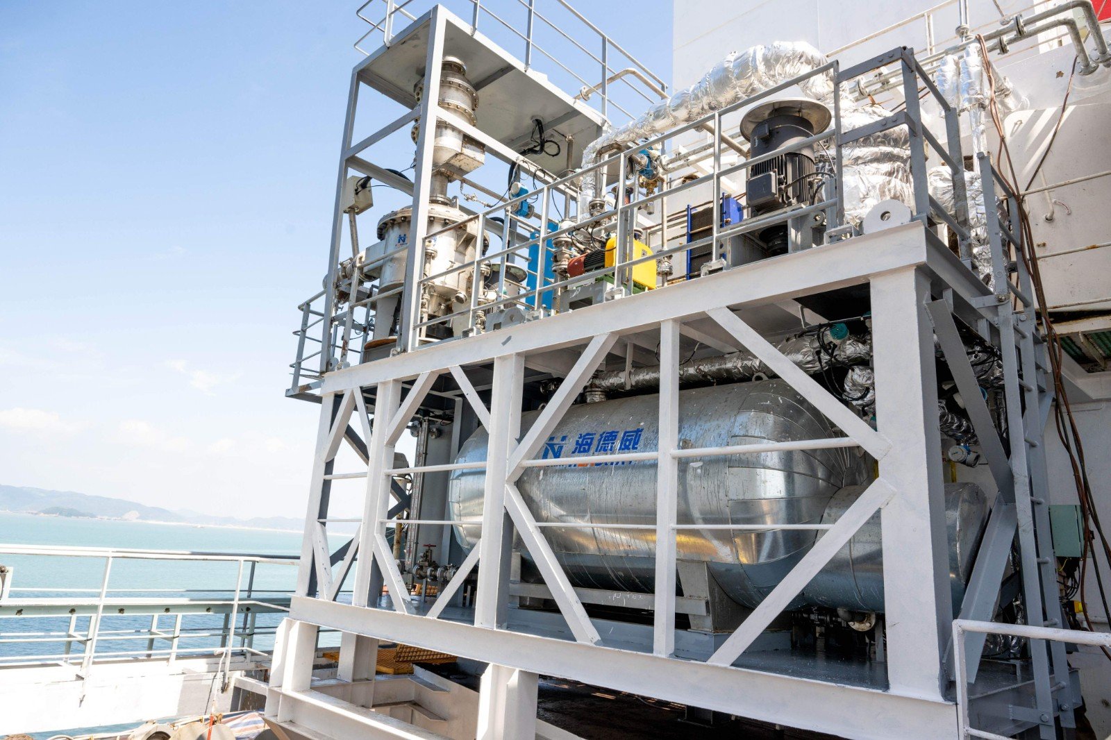 海洋卫士®船载碳捕集系统依托海德威自主设计的高速离心脱碳技术和高性能吸收剂,以高速旋转形成的离心力场替代传统重力场,显著提升了气液两相传质效率,系统脱碳效率超过90%,二氧化碳捕集纯度可达99.6%以上,具有脱碳效率高、体积小、能耗低、安装及储运便捷等优势。